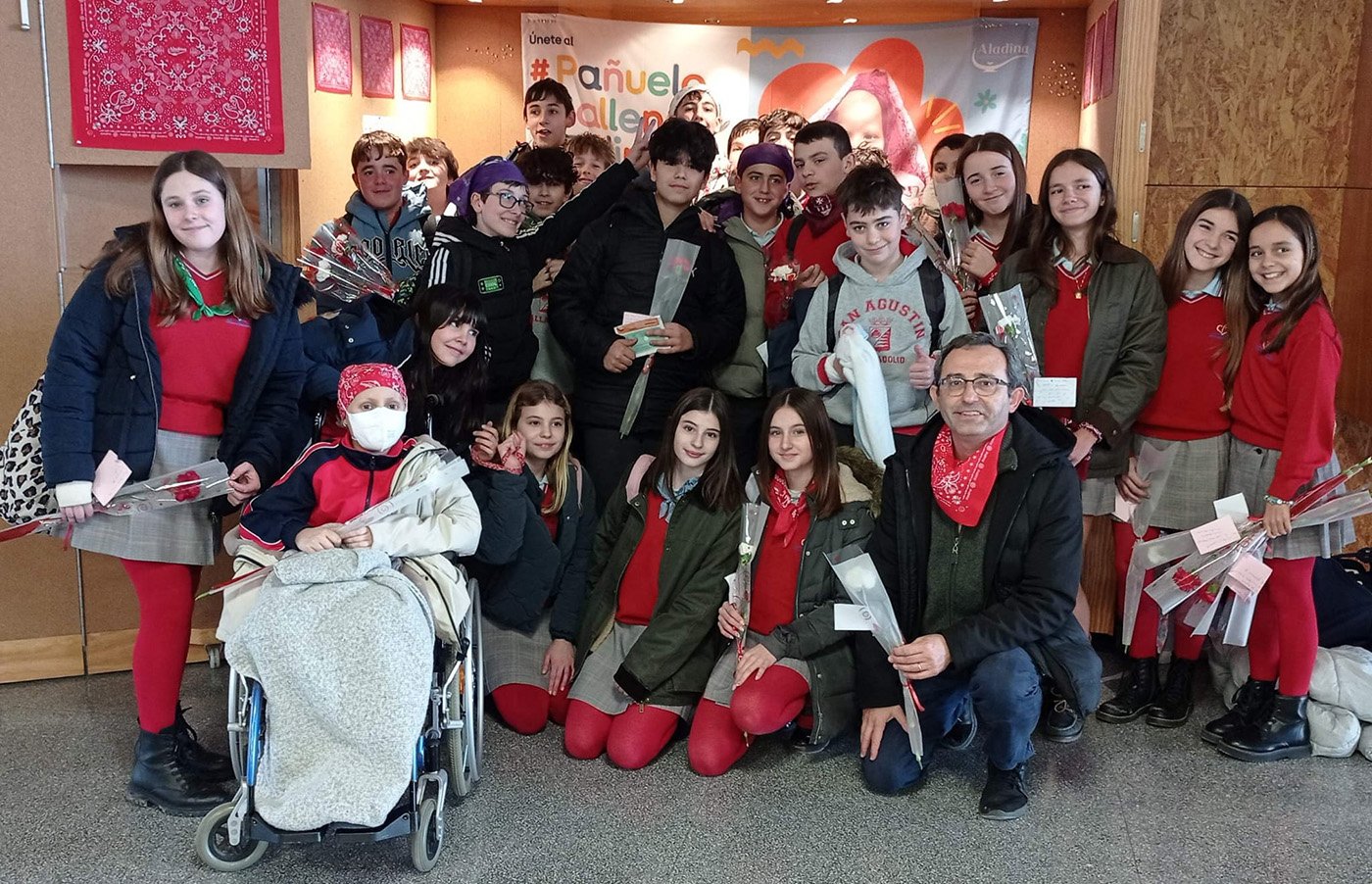 El signo visible fue llevar un pañuelo de pelo como signo de cercanía y compromiso con los pacientes de cáncer, según las recomendaciones y materiales elaborados por la Fundación Aladina, que trabaja con los niños y adolescentes con cáncer y sus familias. Todas las actividades tenían como intención un acercamiento espiritual y pedagógico hacia la enfermedad pediátrica.